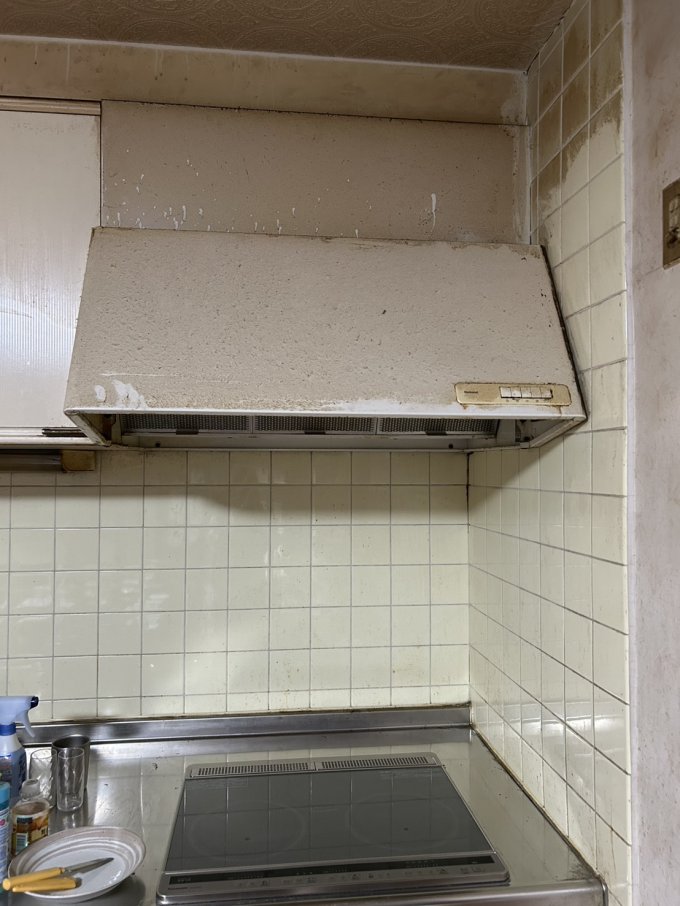 周りがタイルで、既存のレンジフードを外すときに割れてしまったので