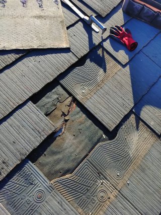 雨漏りしているという相談で屋根の点検をすると屋根材が割れていました(; ・`д・´)