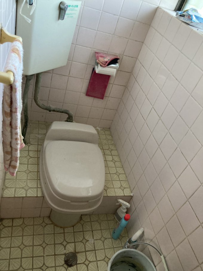 段付きタイル張りのトイレだったのを段を無くして