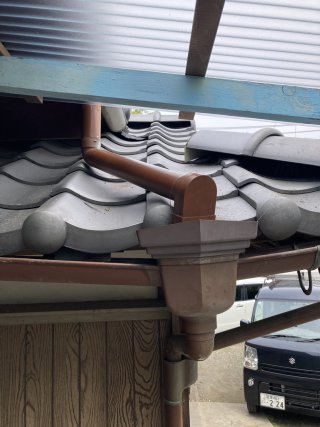 樋の一部分が無くなってしまい、雨天時には行き場を失った雨が落ちてきて玄関前が水浸し