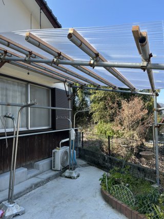 基礎部は施主ご本人様が建造されておりましたが、今回は下地を造作し波板を張らせて頂き