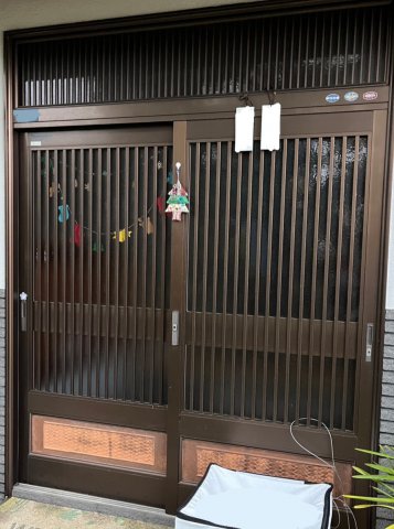 LIXILのペアガラス仕様の玄関引き戸を取り付けさせていただきました。